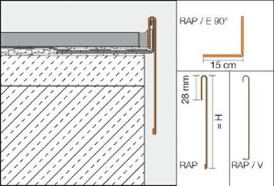 Lemovací profil z nerezové oceli nebo barevně lakovaného hliníku.