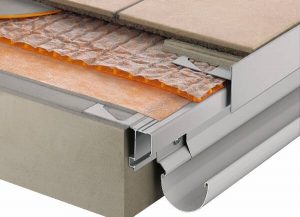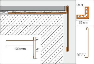 Schlüter®-BARA-RT Ukončovací profil ve tvaru T z barevně lakovaného hliníku zakrývající hranu konstrukce obkladu a spáru plošné drenáže Schlüter®-DITRA-DRAIN.